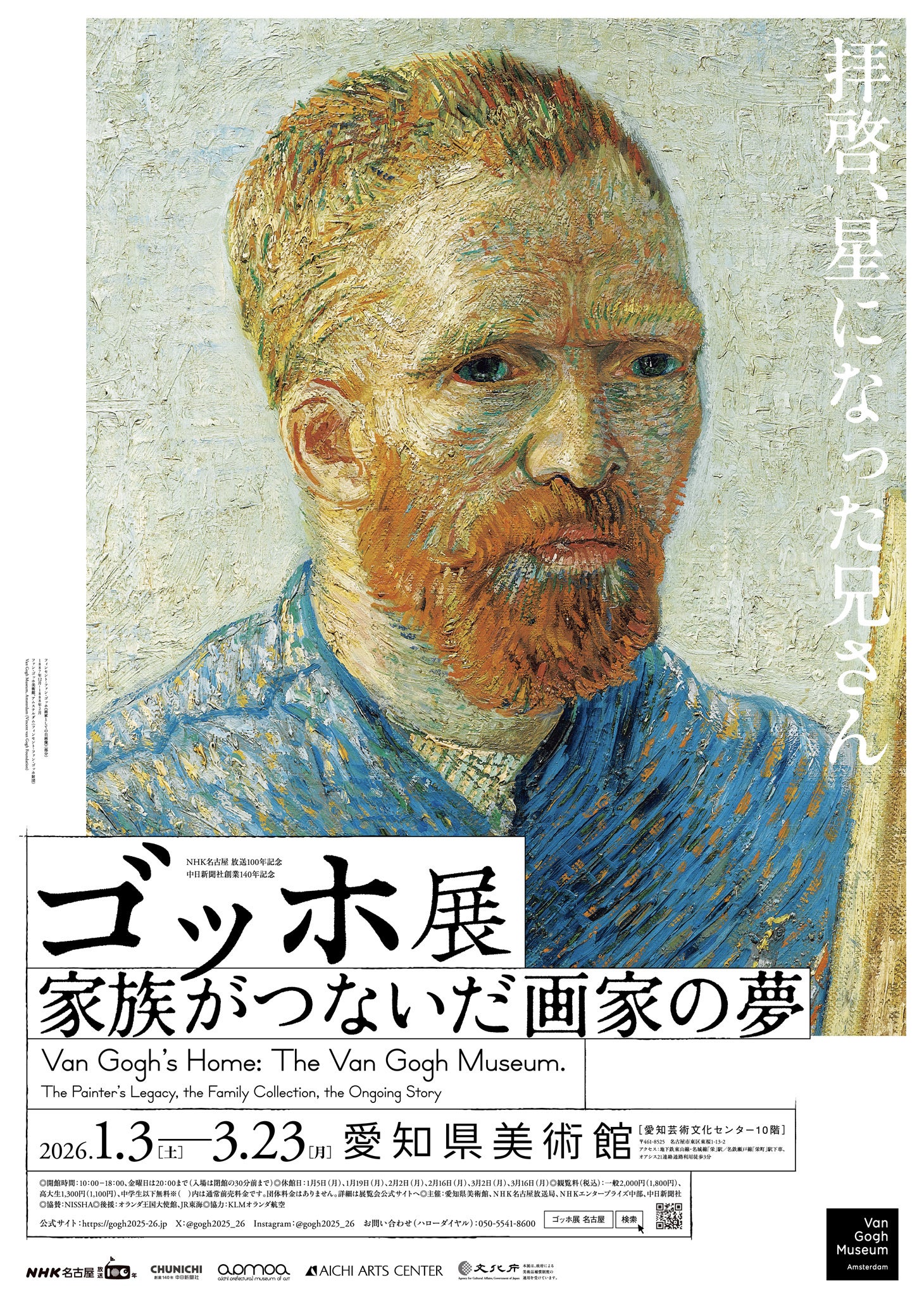 2026年1月3日(土)より、愛知県美術館にて「ゴッホ展 家族がつないだ画家の夢」が開催されます。本展は、大阪府を皮切りとした巡回展であり、東京都を経て、今回の愛知県が最後の地となります。日本初公開となるファン・ゴッホの手紙なども展示し、家族が守り受け継いできたコレクションを紹介する展覧会です。