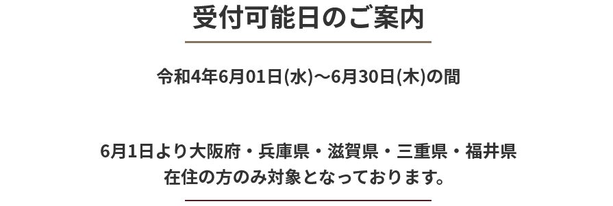 6月1日より大阪府・兵庫県・滋賀県・三重県・福井県