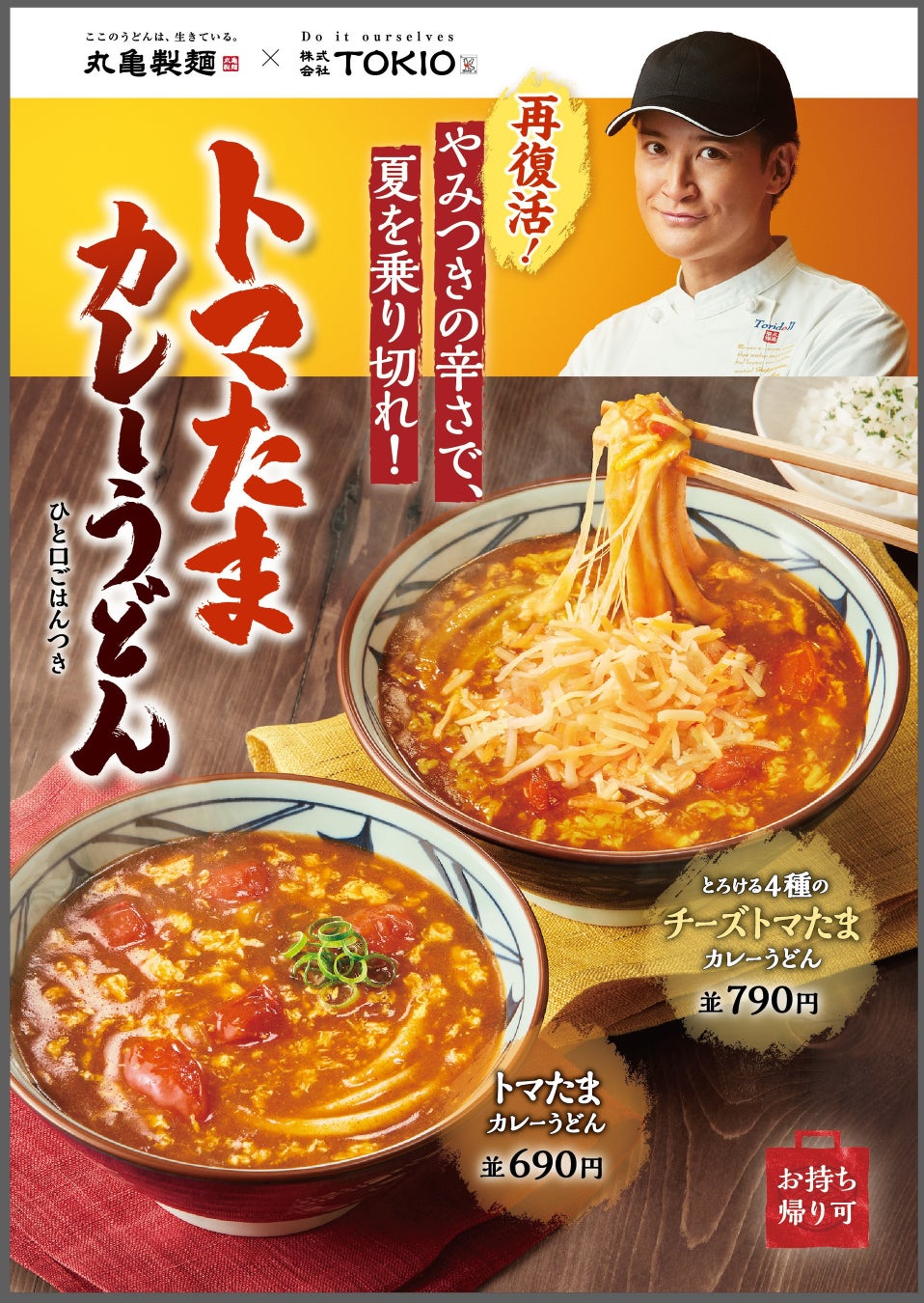 ≪再復活が決定!丸亀製麺と株式会社TOKIO松岡さん渾身の一杯≫ 暑い夏こそ、打ち立てうどんに絡むやみつきの辛さで箸が進む!『トマたまカレーうどん』『とろける4種のチーズトマたまカレーうどん』再び!