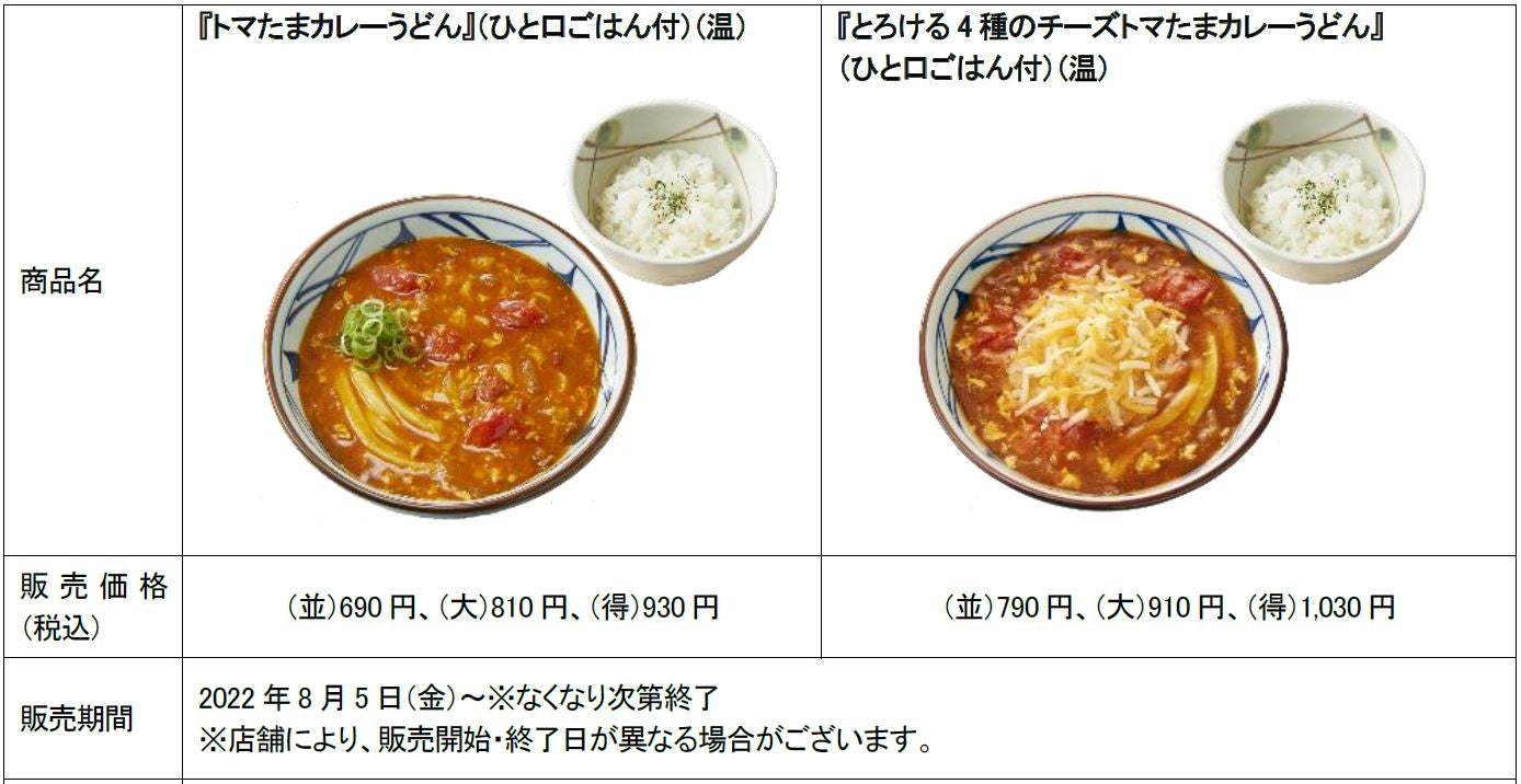 さらに、前回新作として登場した、厳選されたチーズのコクが相性抜群の『とろける4種のチーズトマたまカレーうどん』も復活。厳しい暑さが続くこの夏に、コク深い辛さの『トマたまカレーうどん』で汗をたくさんかいて暑さを吹き飛ばしましょう。