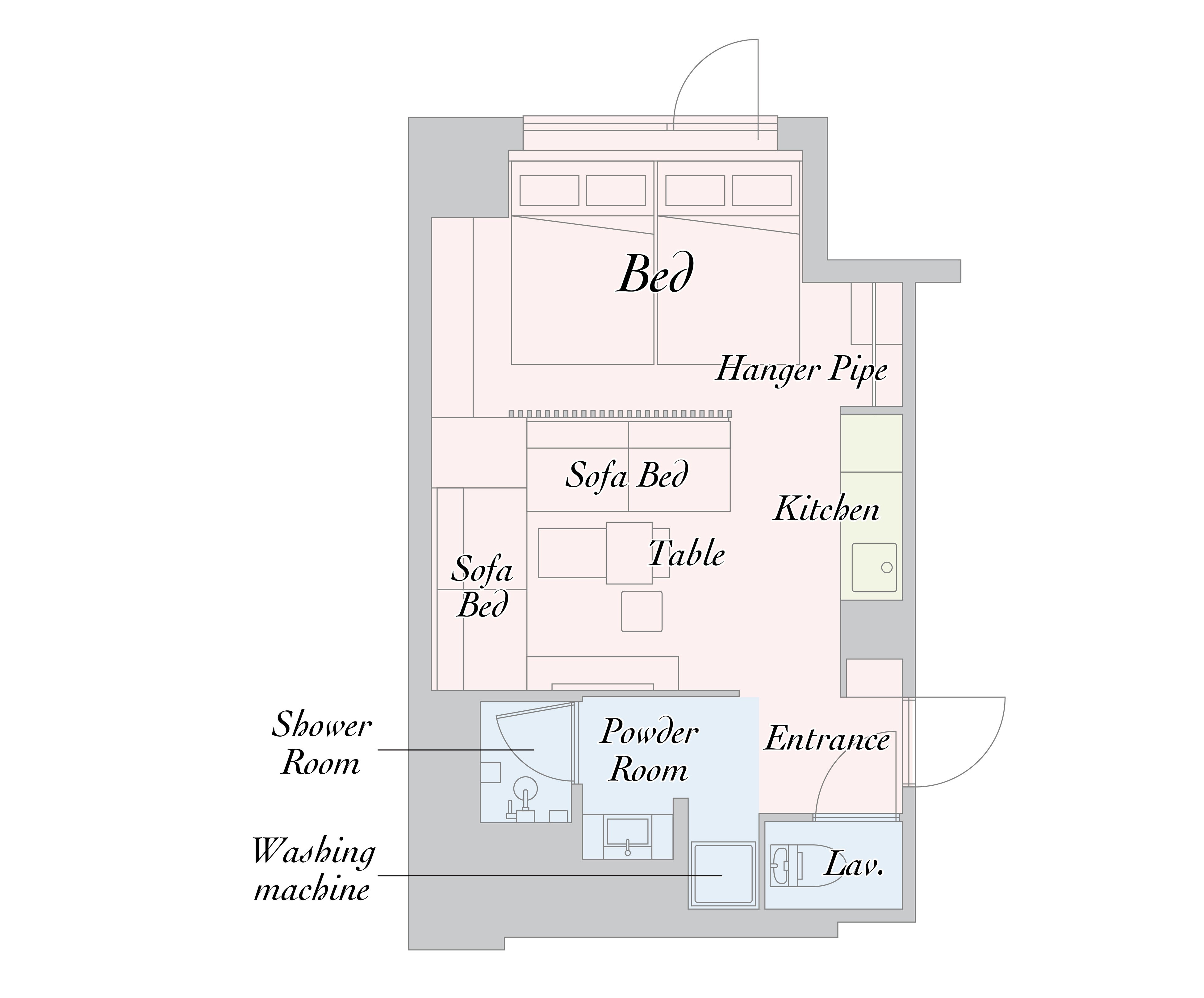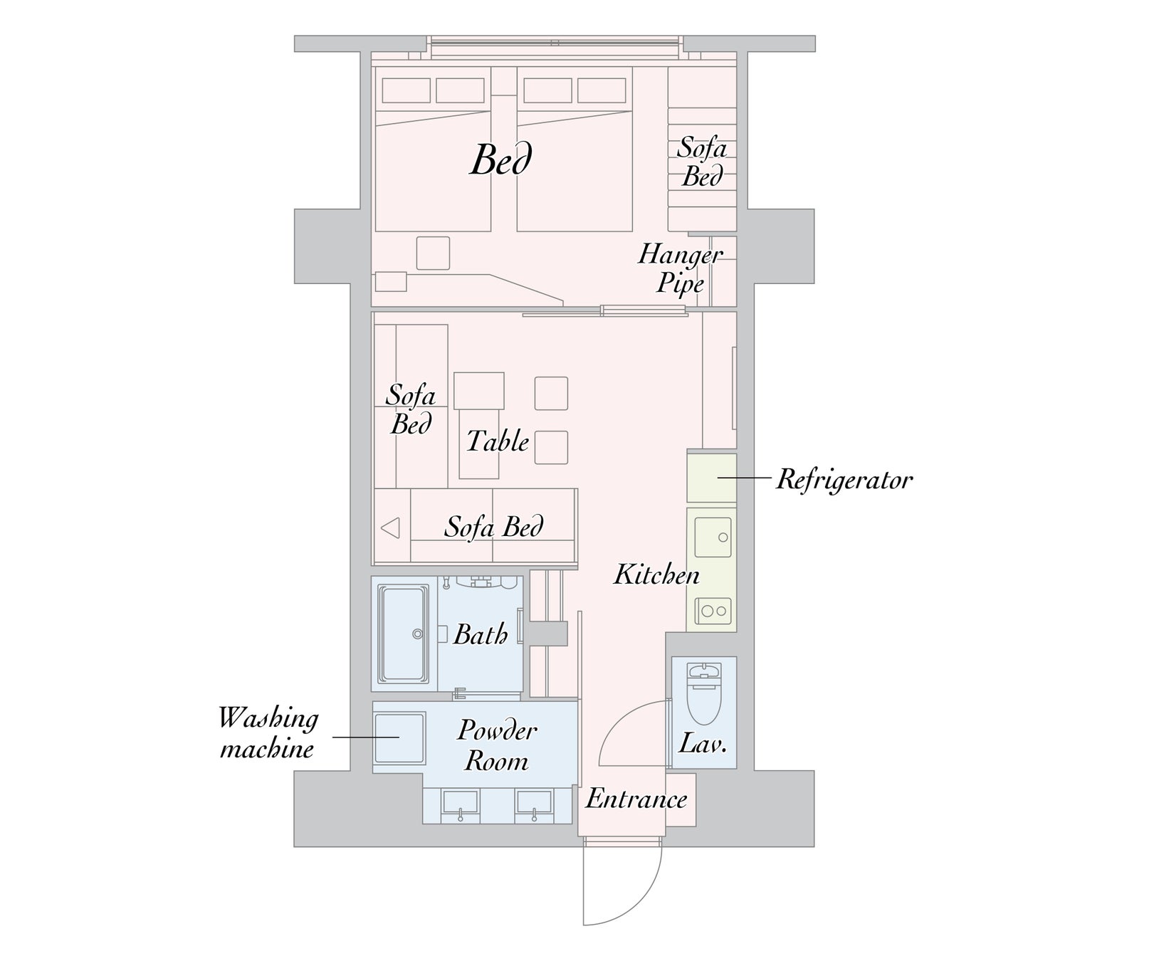 シンプルかつ機能的でありながら日本の美意識を生かした客室や、自炊可能なキッチンや洗濯乾燥機をはじめとした長期滞在者向けの設備など、お客様の快適な滞在を叶えるためのサービスを取り揃えています。