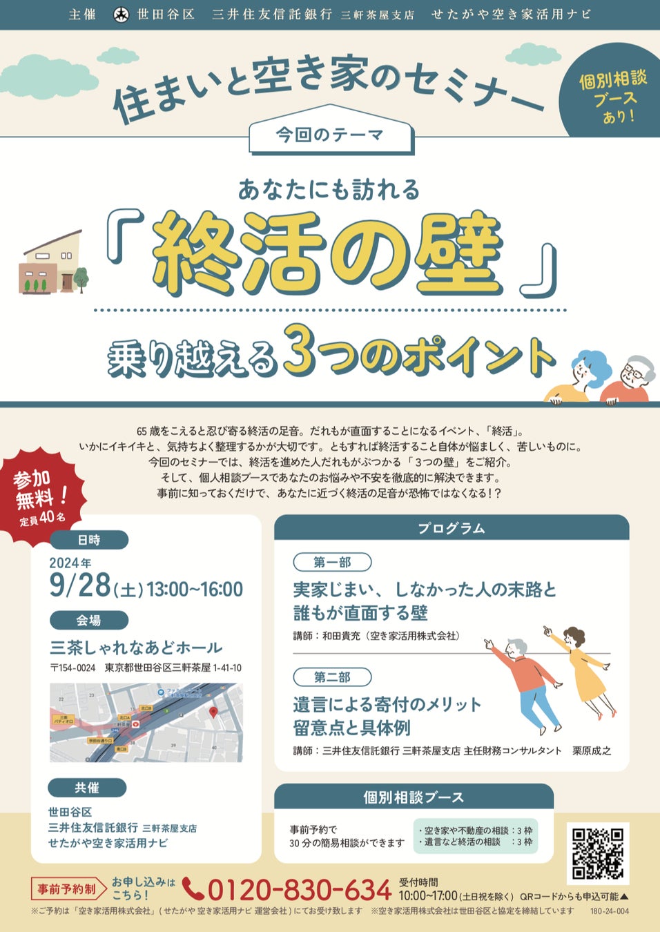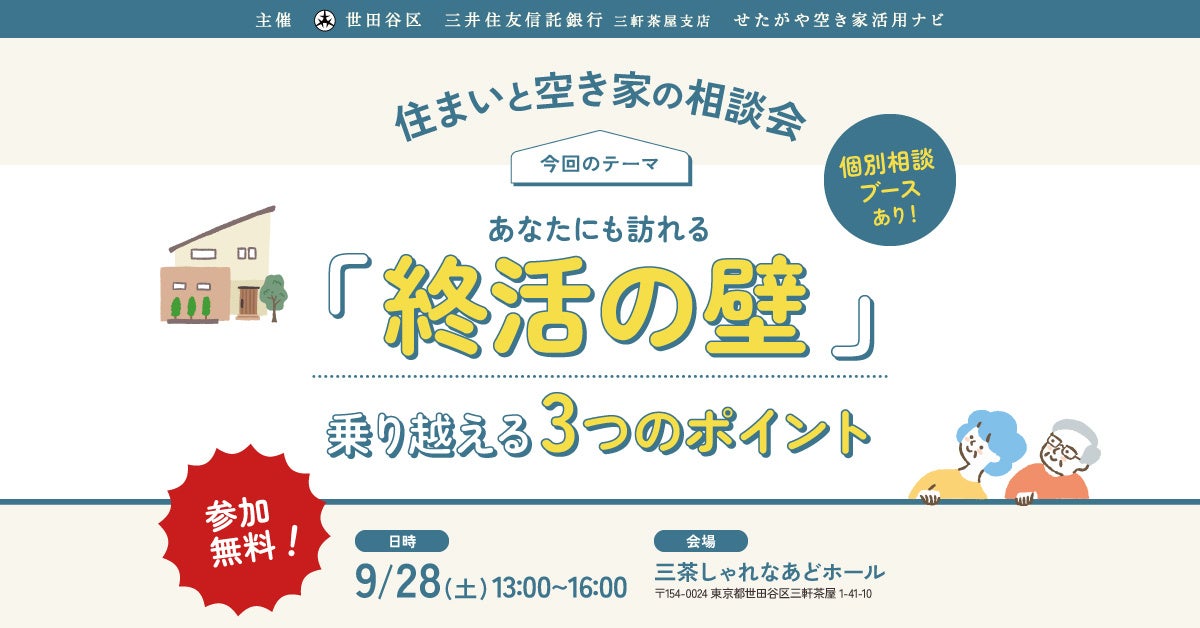 9/28(土)開催! 実家じまいを考えるための、住まいと空き家のセミナー開催!世田谷区主催で、「終活の壁」を乗り越える3つのポイントをレクチャー。参加無料だから気軽にご参加ください