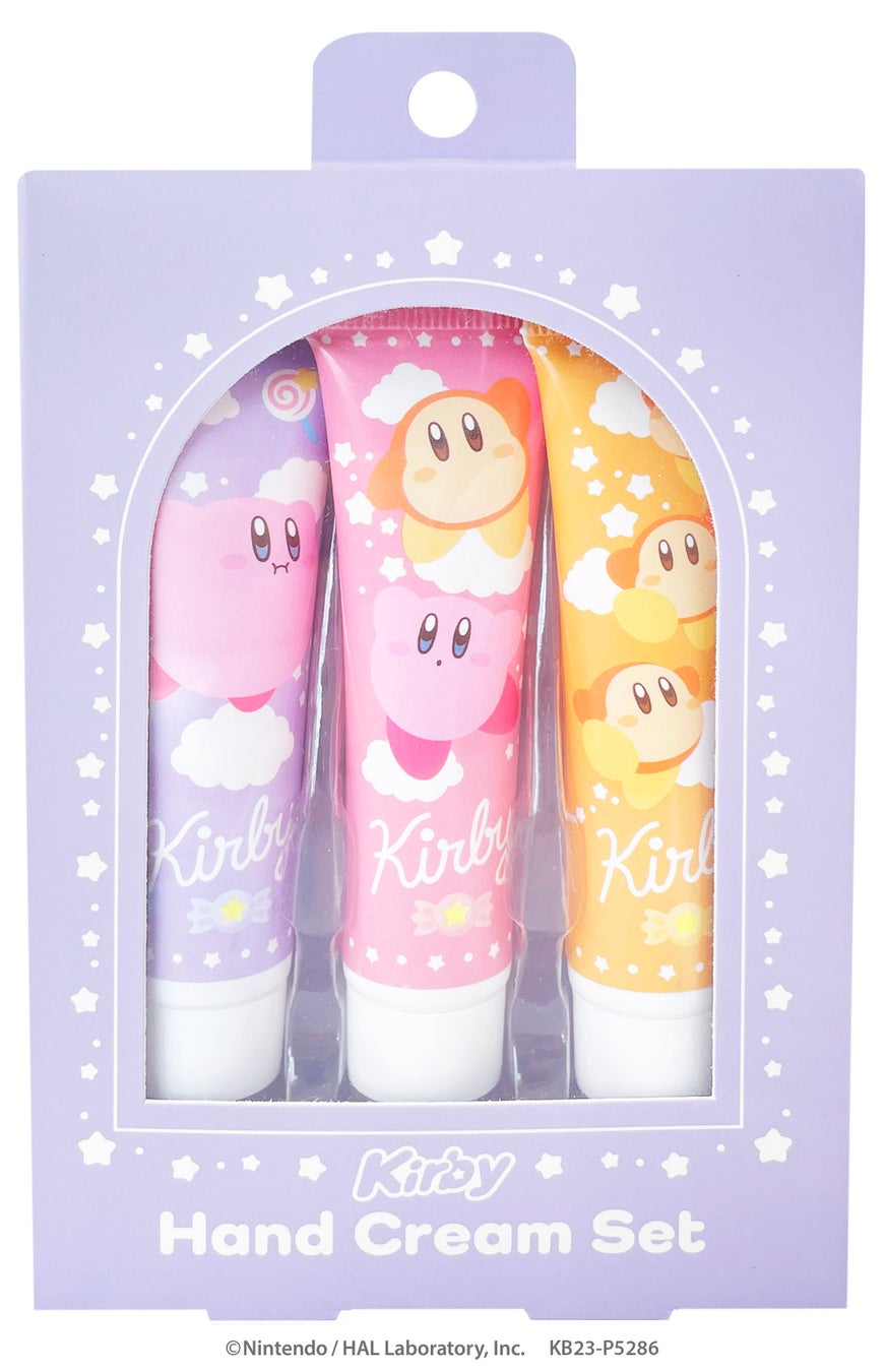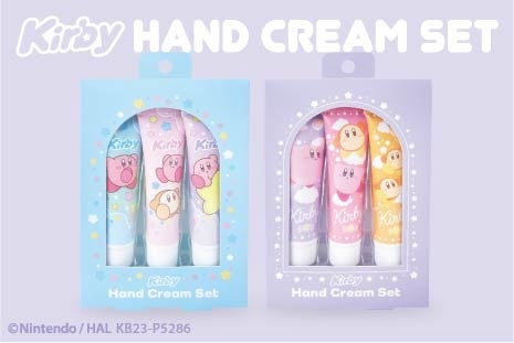 新商品は、そんなカービィのキュートなイラストがプリントされたハンドクリーム3個セットの2種展開となっています。