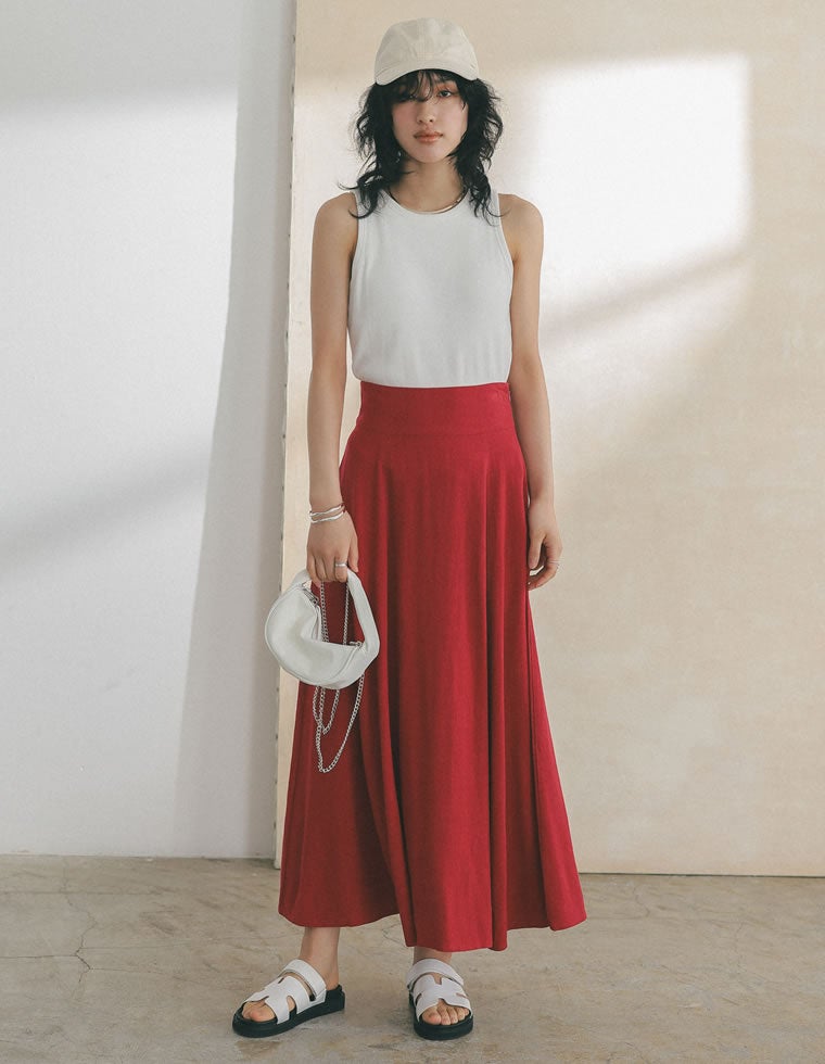 涼し気な風合いと鮮やかなカラーが魅力のリネンブレンドフレアスカート