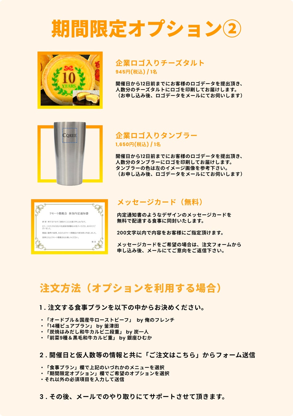 ◆内定式・内定者懇親会用新メニュー注文方法など