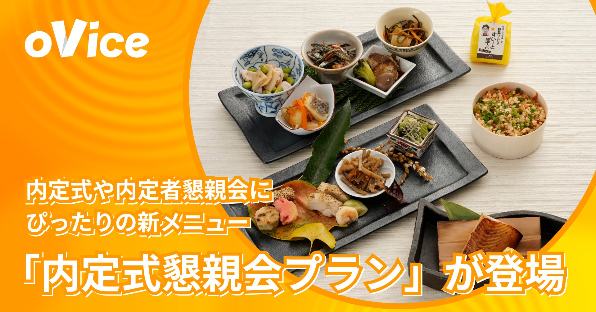 oVice株式会社(本社:石川県七尾市、代表取締役CEO:ジョン・セーヒョン)は、アバターで自由に交流できる2次元のバーチャル空間「oVice(オヴィス)」を活用してオンラインでの懇親会や会食が開催できる「oVice宴会」の新メニューとして、内定式や内定者懇親会にぴったりの新メニュー「内定式懇親会プラン」(4,800円・税・送料込)の販売を、本日2022年8月10日(水)に開始しました。