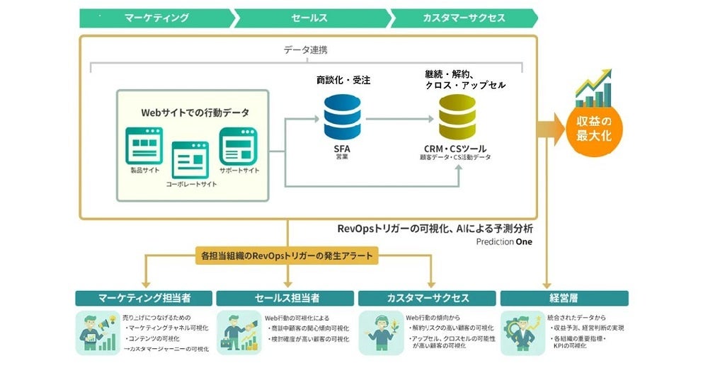 〜マーケティング・営業・カスタマーサクセスの連携データから、各組織における収益最大化のためのトリガー指標を可視化、収益予測を実現〜