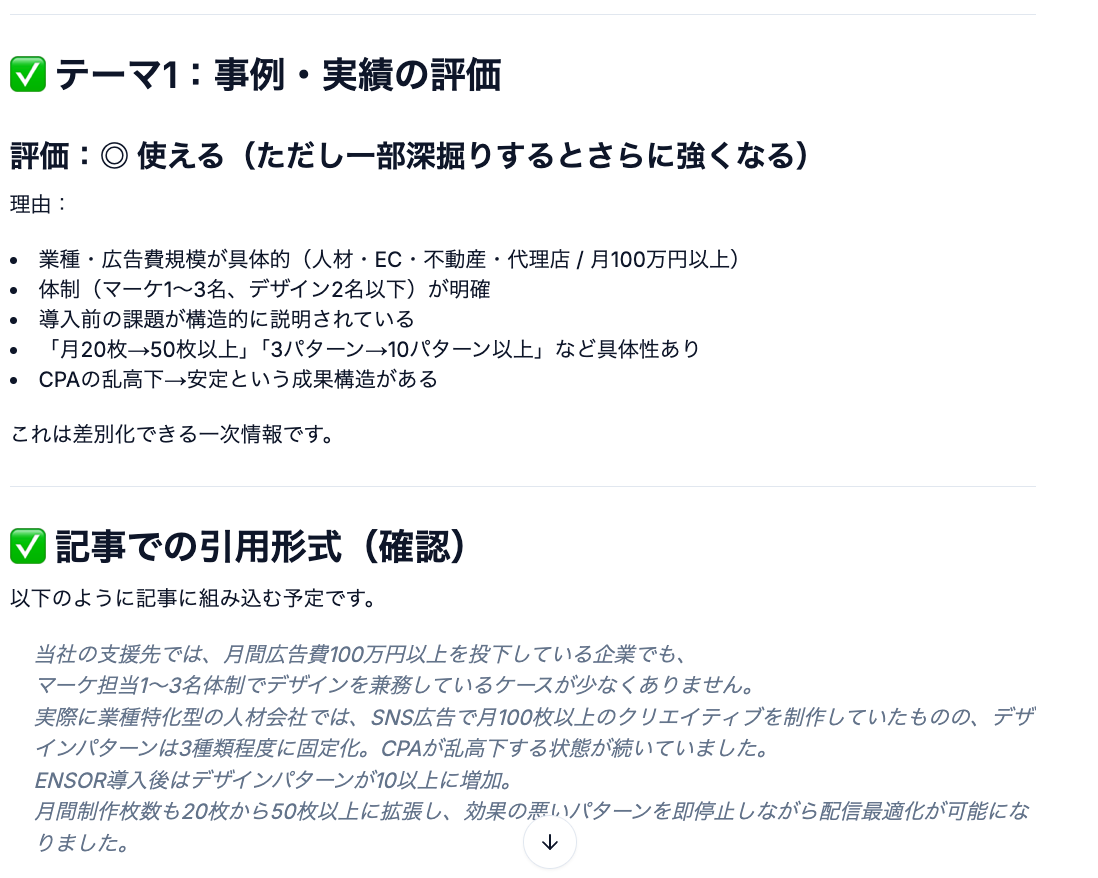 ラフ作成:ブランド理解済みAIとの対話で、最適な訴求軸とコピーを生成