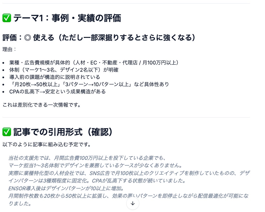 ENSORは、こうした「専門性の壁」を取り除き、SEO知識がないマーケターでも高品質なコンテンツ制作を内製で実現できる環境を提供するため、本機能をリリースしました。