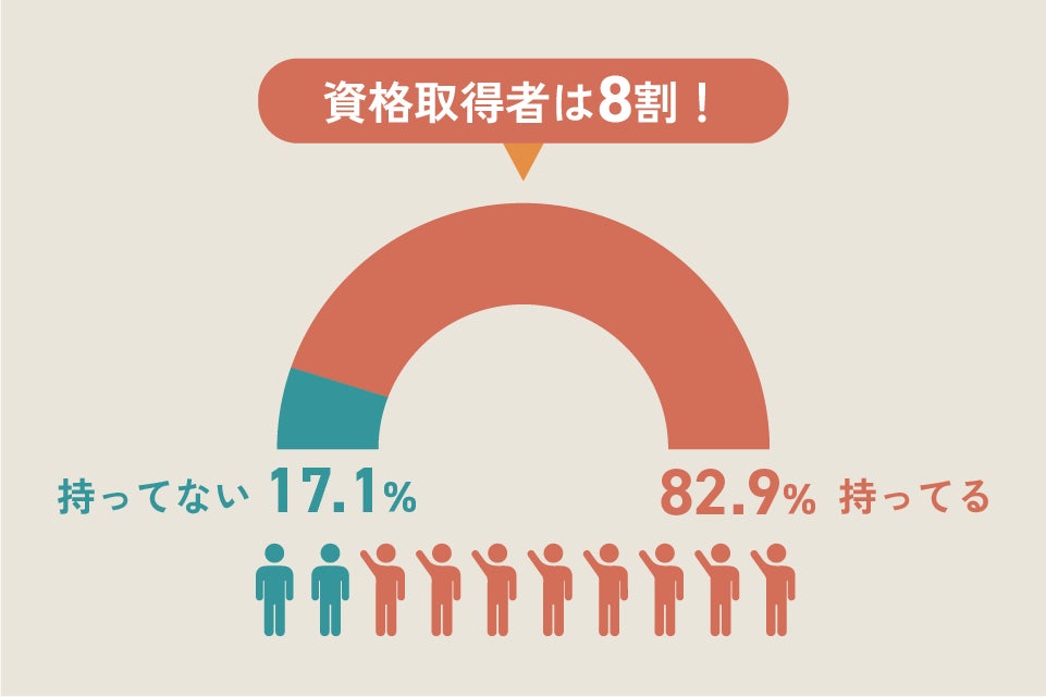 運転免許を除外した上でも、82.9%が資格を保有している結果となり、資格取得が広く一般化していることが明らかに。