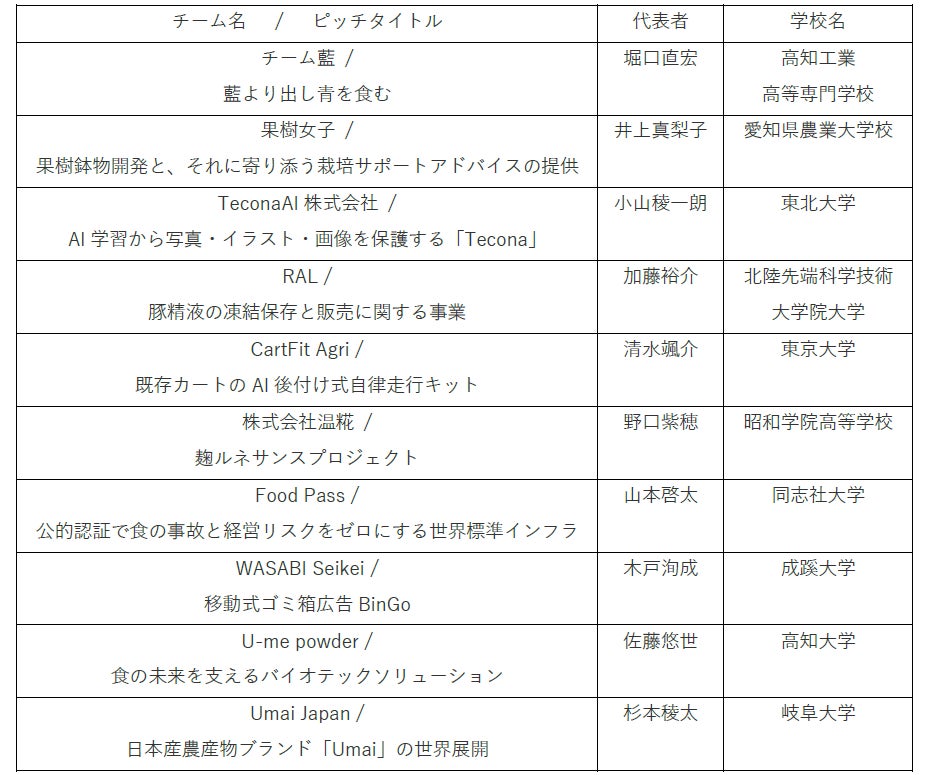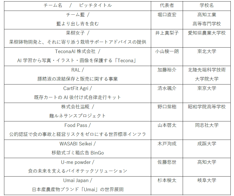 食・農・くらし等の分野で全国の学生からアイディアを募集