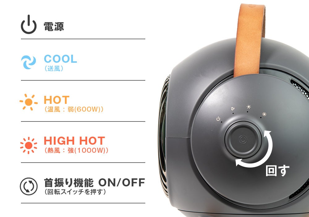 消費電力 :送風:2.5W-3.5W / 弱:600W / 強:1000W