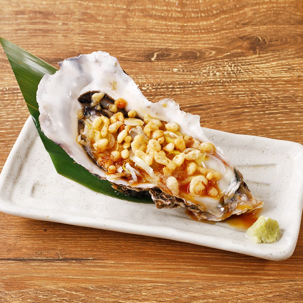 牡蠣に出汁とあげ玉をかけたたぬき風。