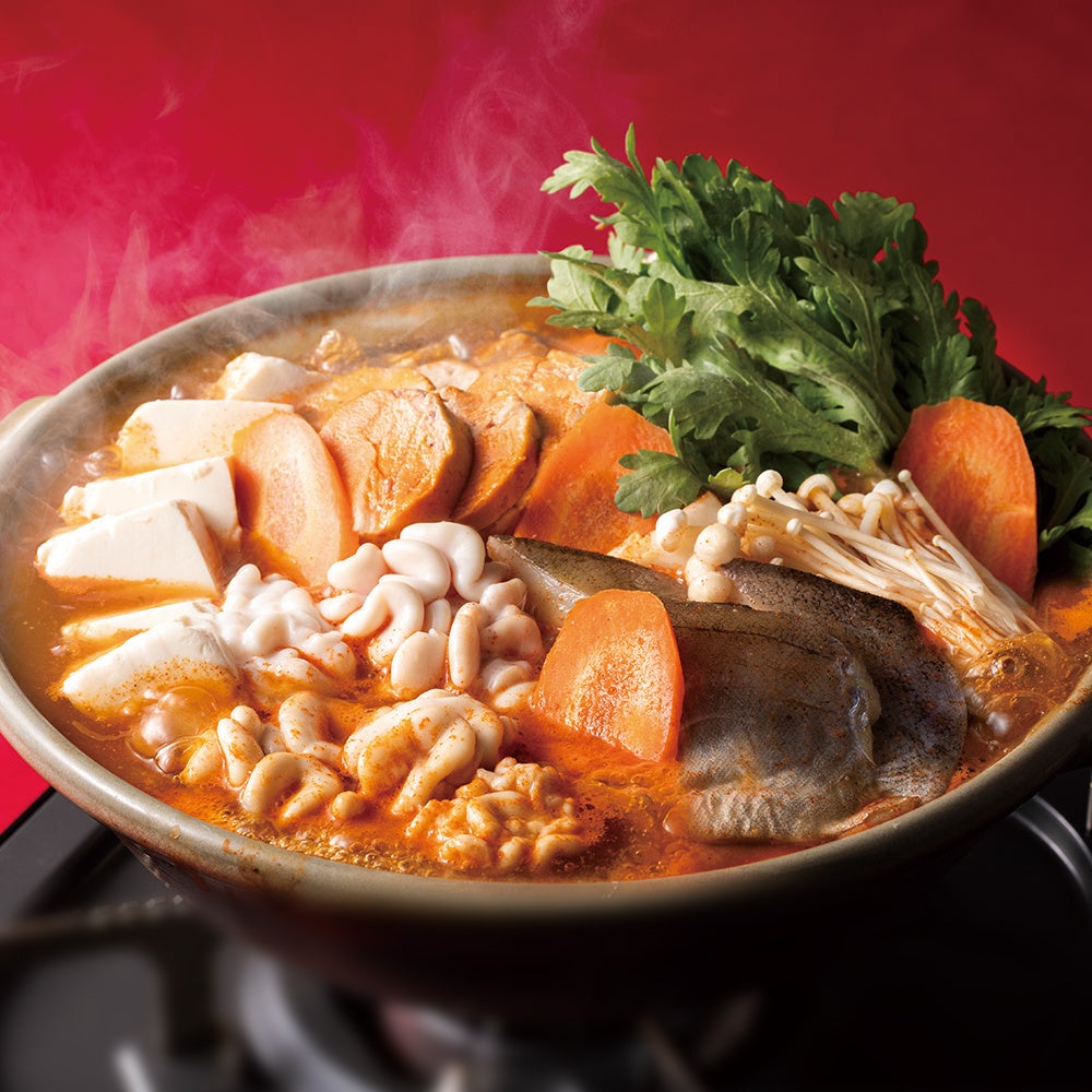 クリーミーで甘みのある生白子と濃厚なあん肝が溶けだしたスープは、最後の一滴まで飲み干すほどの旨さ。海鮮の旨みを最大限に堪能できる【白】と、にんにくや玉ねぎなどの香味が引き出すコクのある辛ウマスープの【赤】。今年は2種類のスープでご用意いたします。