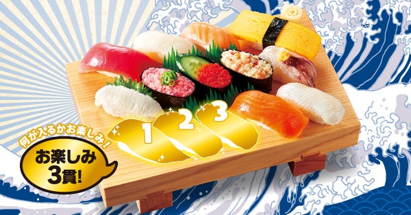 何が入るかわからない「お楽しみ3貫ネタ」入りで、『ドキドキ・ワクワク』感もお楽しみください♪
