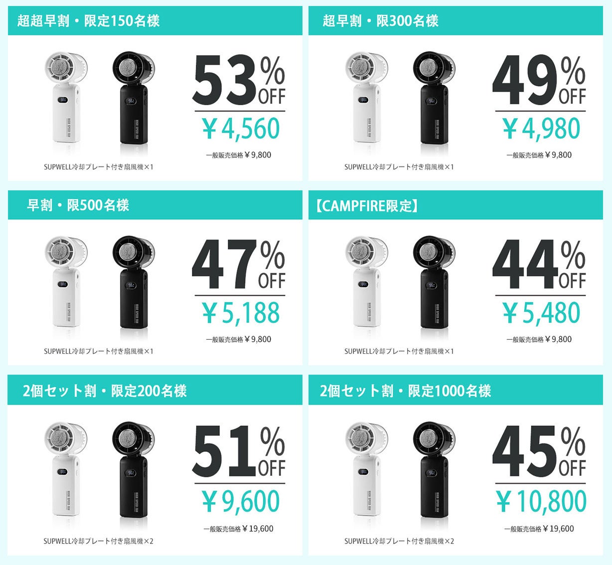 「SUPWELL冷却プレート付き扇風機」は、進化したブラシレスモーターを採用し、送風機能に加え冷却プレートを搭載し、肌に触れるだけで瞬時に爽快なクールダウンが可能です。デジタル表示画面で風量を1-100無段階に細かく調節可能。3600mAhの大容量バッテリーで、最長11.5時間の連続使用が可能です。