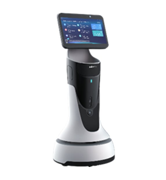 優れた音声案内機能と大型タッチパネル・小型な本体サイズで多様なニーズに対応する案内・受付ロボットです。お客様をご誘導する案内業務や内蔵カメラを活用した巡視活動などで、オフィスや空港・駅、会議場などあらゆる場所での活躍を想定しています。