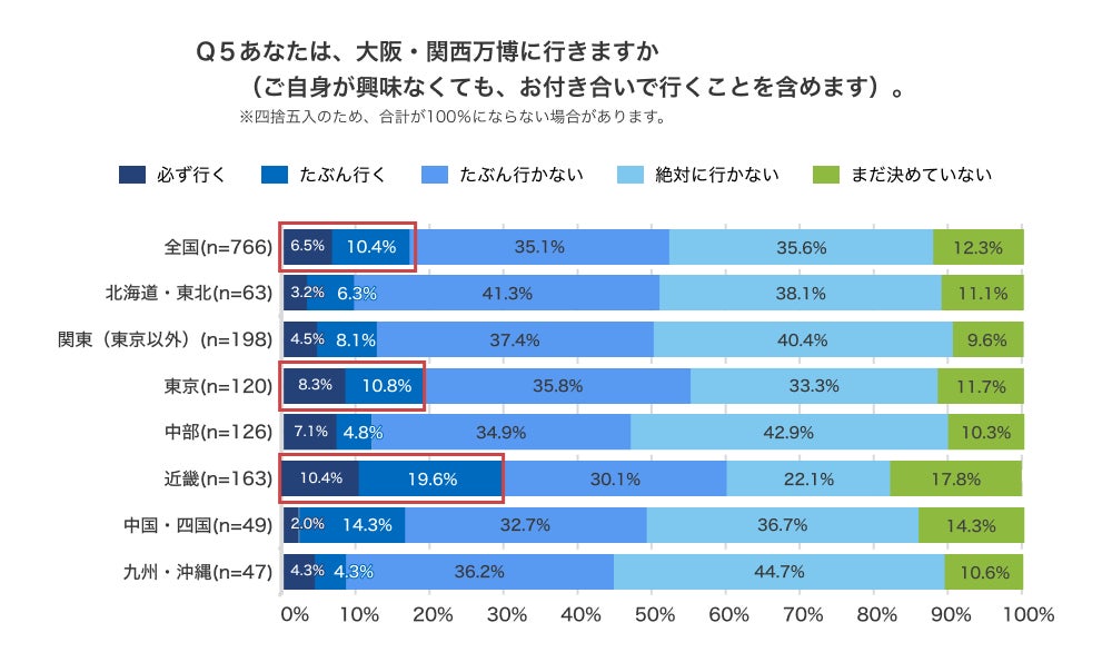 ■【万博への参加意向】「行く」は全国で17%、近畿では30%