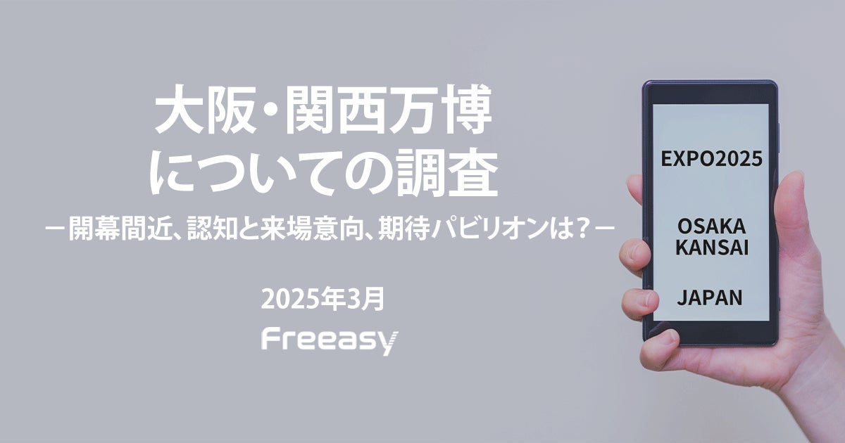 アイブリッジ株式会社が展開するセルフ型アンケートツール“Freeasy(フリージー)”では、約1,300万人のモニター会員を活用し、2025年2月21日、15歳以上の男女を対象に、「大阪・関西万博についての調査-開幕間近、認知と来場意向、期待パビリオンは?-」を実施いたしました。