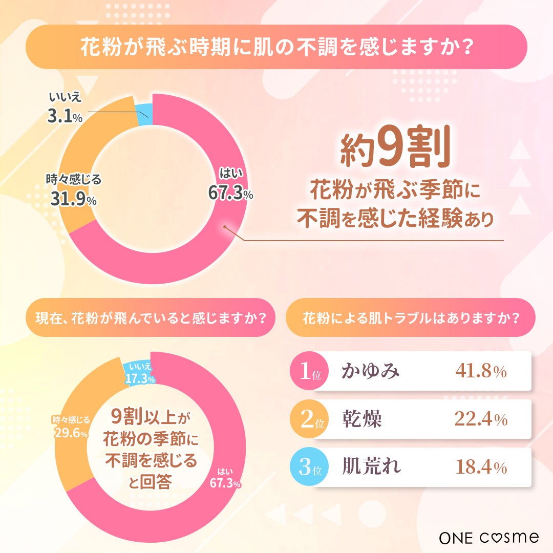 【9割以上が花粉時期の肌荒れ経験】主な悩みは"かゆみ"や"乾燥"だった…!