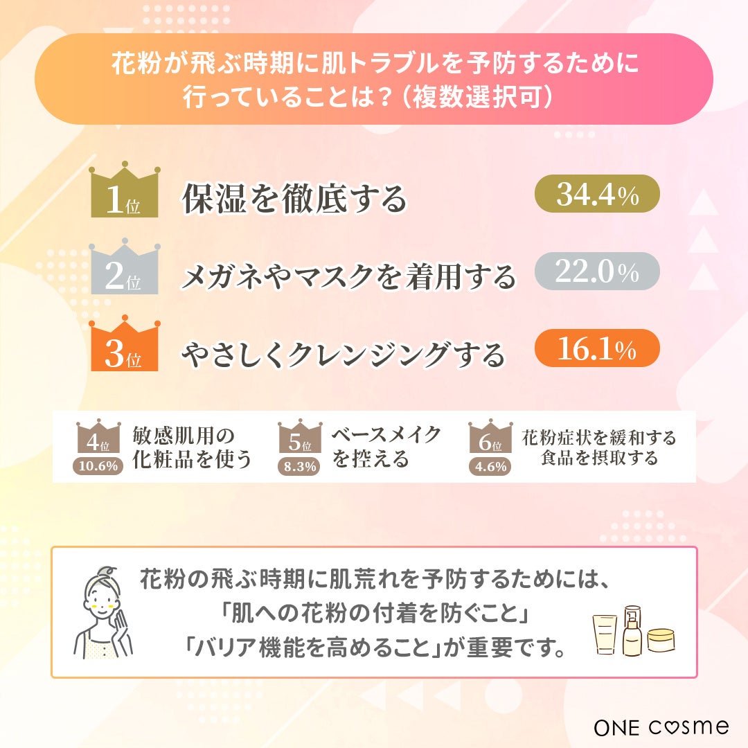 花粉時期の肌トラブルへのケア1位は「保湿を徹底する」でした!肌質別に花粉時期のスキンケアなど美容意識の高いユーザー98名の実態を大調査!