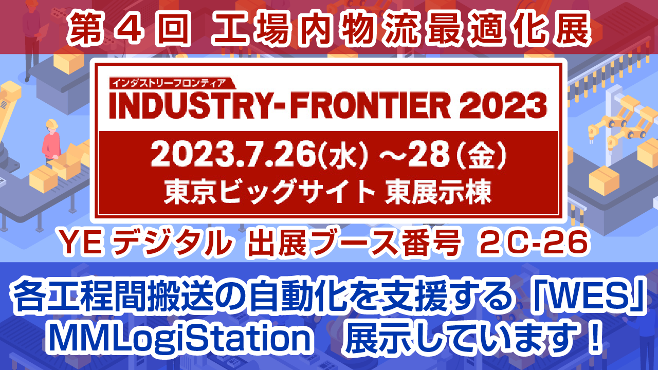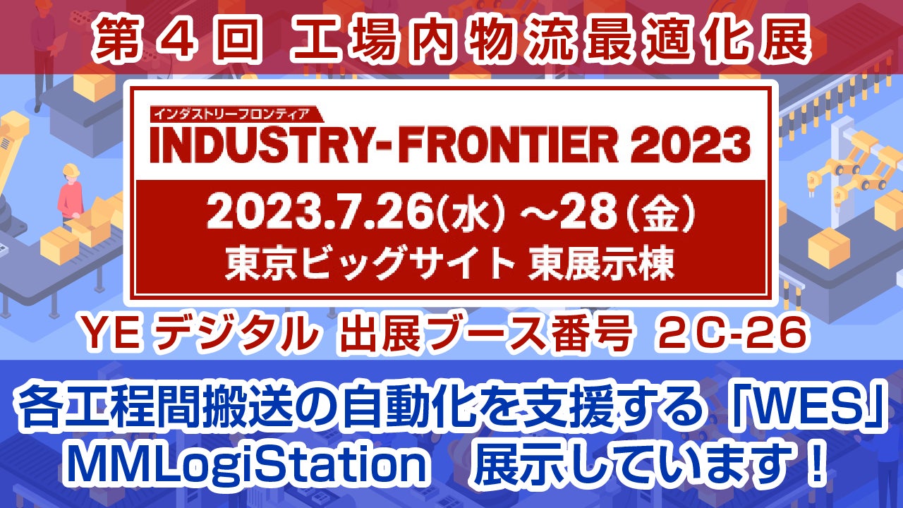 株式会社YE DIGITALが提供する、倉庫自動化システム「MMLogiStation」はこの度、2023年7月26日(水)~28日(金)の3日間、「東京ビッグサイト」で開催される、INDUSTRY-FRONTIER 2023「第4回工場内物流最適化展」に出展いたします。