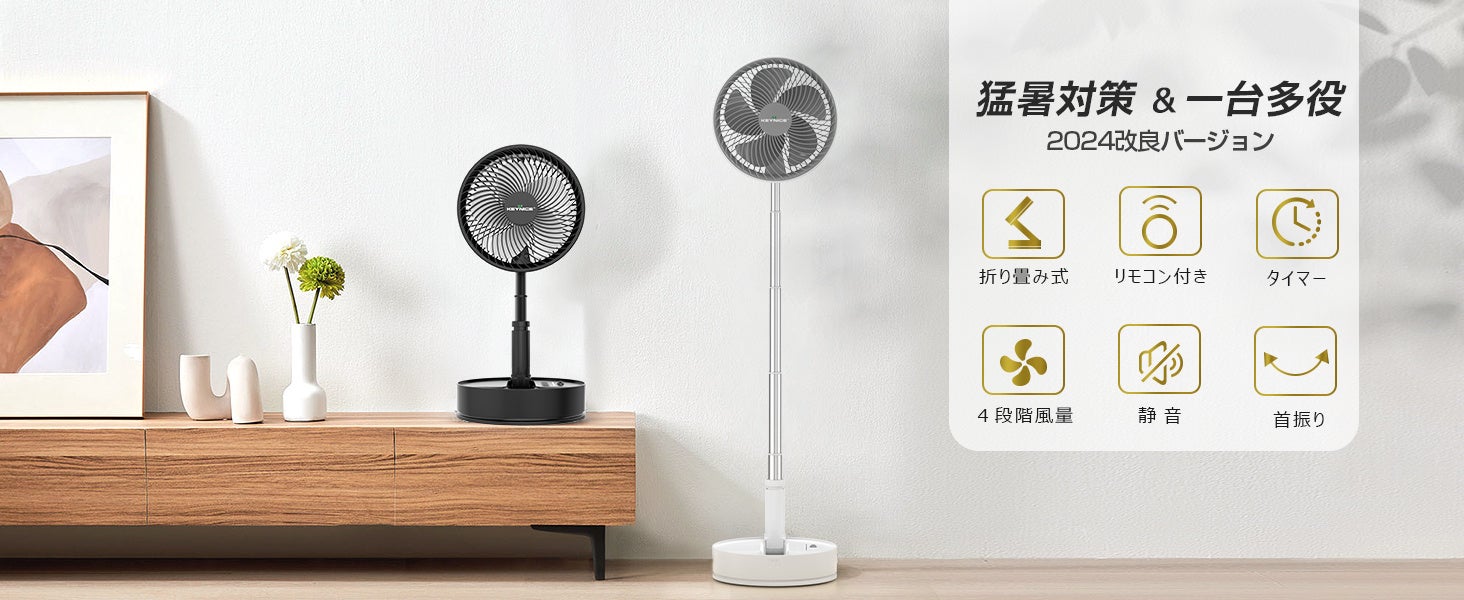Keyniceでは2024年夏の新作、「KN-Q8Pro 節電型 折りたたみ 伸縮式 卓上扇風機 首振り タイマー付き」を2024年1月29日(月)より販売開始しています。