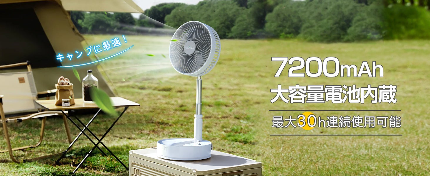 大容量バッテリー&メンテナンス簡単:USB充電式でコードレス使用が可能。7200mAhの大容量バッテリーで、4~30時間の連続使用が可能です。前面カバーと羽根は取り外し可能で、お手入れが簡単です。