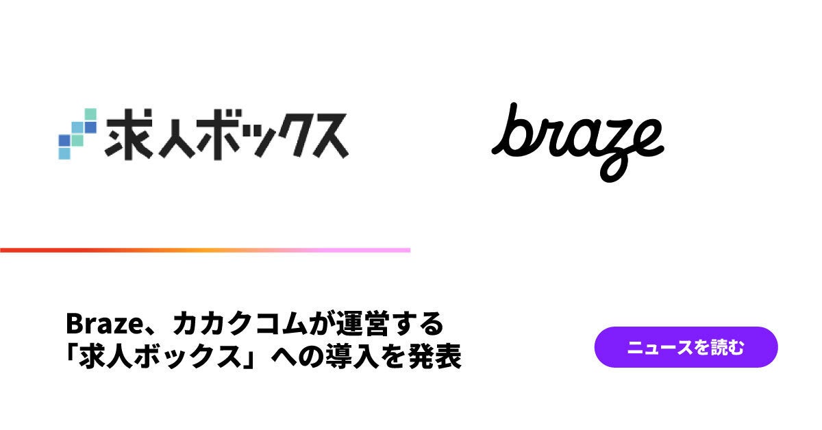 カスタマエンゲージメントプラットフォームのリーダーである Braze株式会社(読み方:ブレイズ、本社:東京都港区、代表取締役社長:水谷 篤尚、以下「Braze」)は、株式会社カカクコム(以下:カカクコム)が運営する求人情報の一括検索サービス「求人ボックス(https://求人ボックス.com/)」に、顧客エンゲージメント基盤としてBrazeが導入されると発表しました。