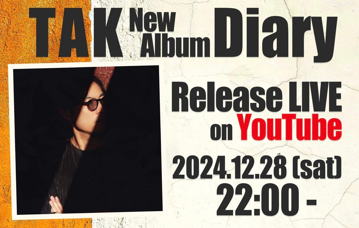 リリース直前の12月28日(土)22時からは、『Diary』リリース記念ライブ配信を、TAKのYouTubeチャンネルにて行う予定です。