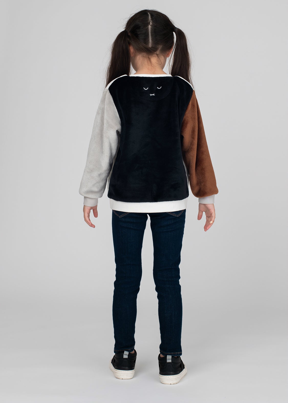両ひじをついたミッフィーをアップリケにしたデザインです。風合いの良い裏毛を使用したベーシック型のスウェット。
