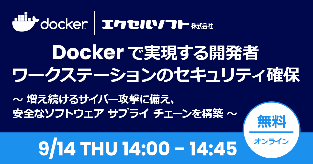 エクセルソフト、Docker 社と初となる共同ウェビナー 「Docker で実現する開発サプライ チェーンのセキュリティ確保」を 9/14 (木) に開催