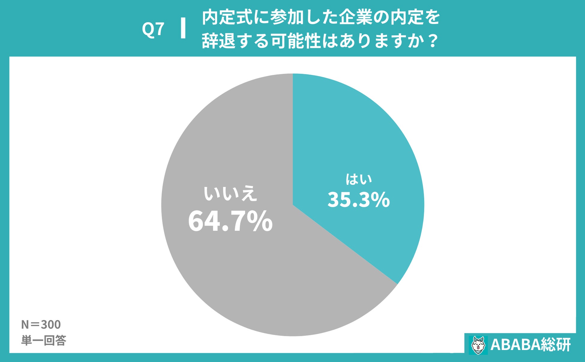 Q7. 内定式に参加した企業の内定を辞退する可能性はありますか?