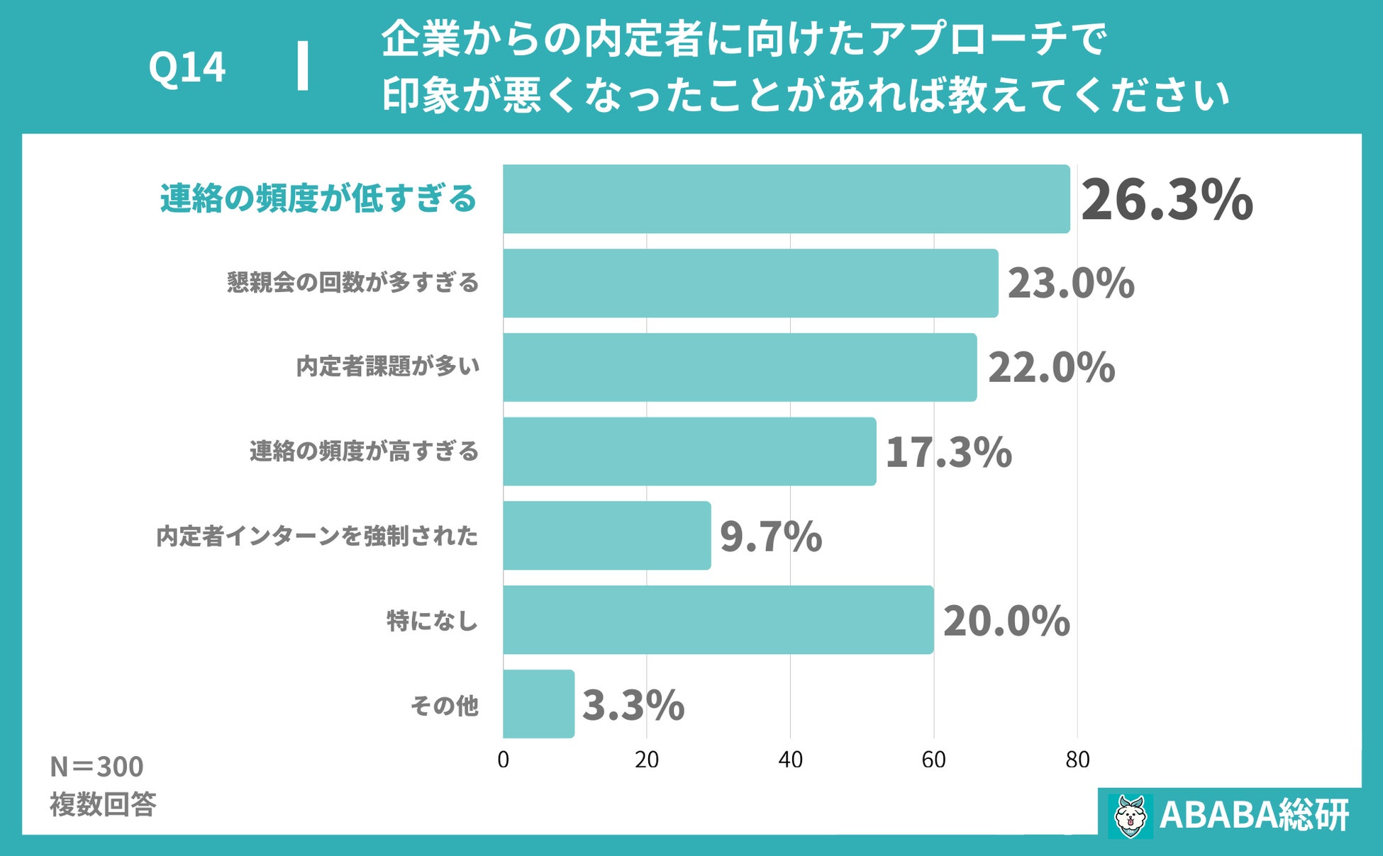 Q14.企業からの内定者に向けたアプローチで、印象が悪くなったことがあれば教えてください