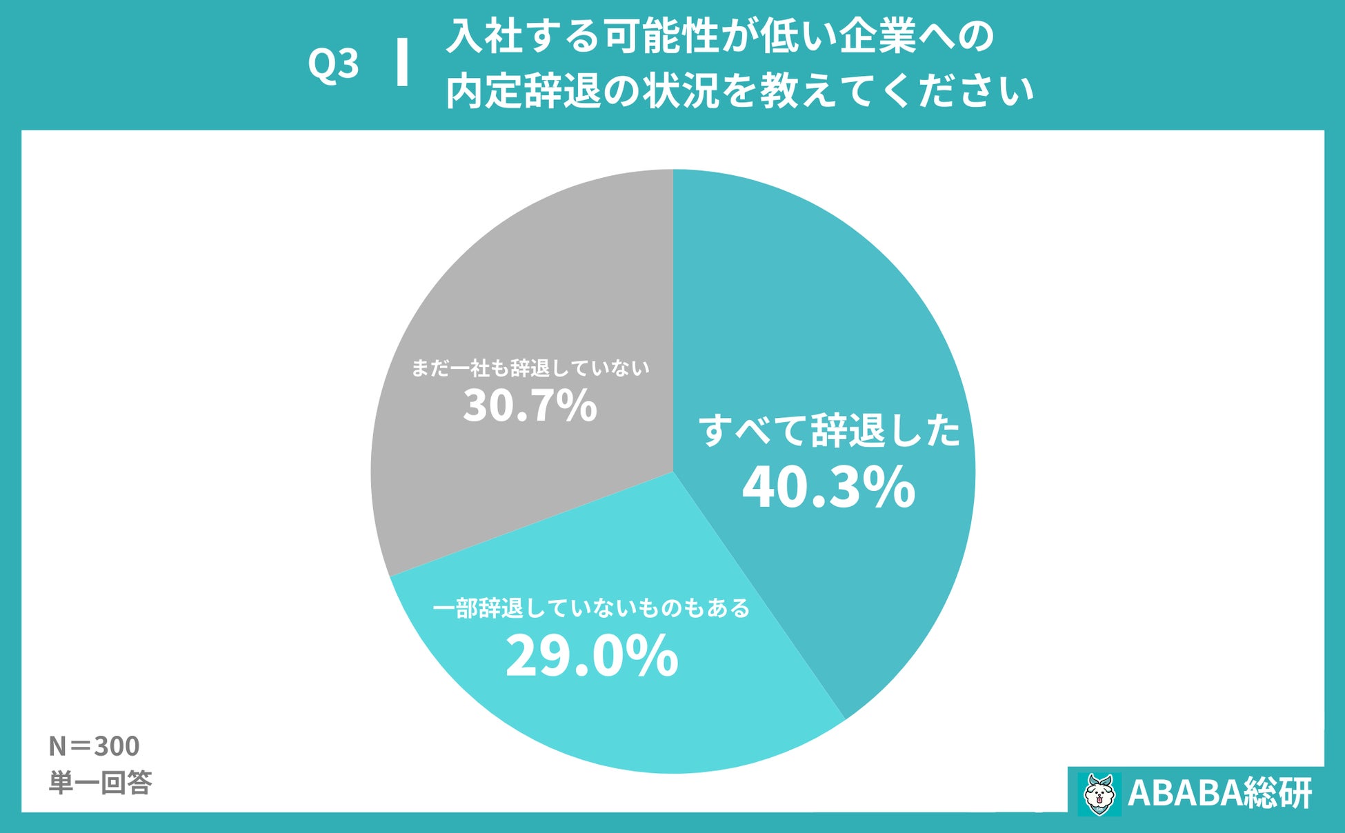 Q3.入社する可能性が低い企業への内定辞退の状況を教えて下さい