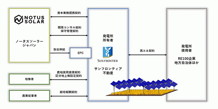 サンフロンティア不動産株式会社(本社:東京都千代田区、代表取締役社長:齋藤 清一、以下「当社」)は、この度、営農型太陽光発電(ソーラーシェアリング)の企画・コンサルティング・架台システムの提供を手掛けるノータスソーラージャパン株式会社(本社:大阪府大阪市、代表取締役社長:髙橋 隆造、以下「ノータスソーラージャパン」)と資本業務提携に関する基本合意を締結いたしました。