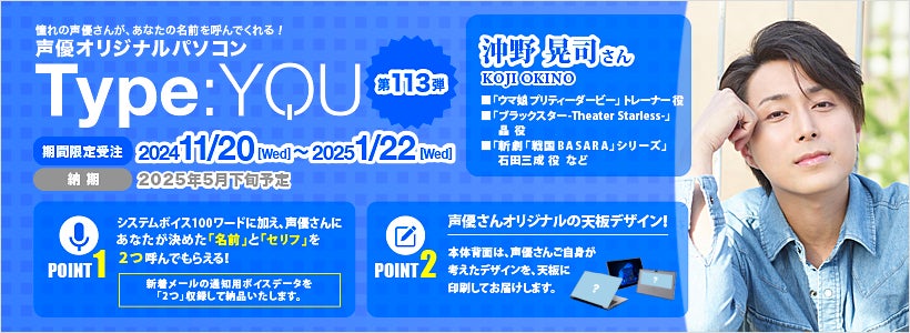 声優オリジナルパソコンに沖野晃司さんが登場!【Type:YOU -タイプユー-】第113弾は11月20日(水)よりスマッシュコアで受注開始!