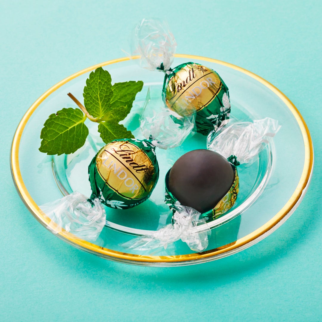 シェルとよばれる外側のチョコレートの殻を破ると、中からくちどけなめらかなフィリングがとろけ出す、リンツで一番人気の商品「リンドール」から、新フレーバー リンドール「ダークミント」が登場します。「ダークミント」はダークチョコレートのシェルに、爽やかなミントの香りが広がるホワイトチョコレートのフィリングが入っており、ティーやお酒と相性の良いリンドールです。