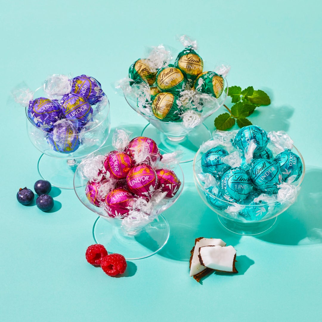 期間限定のリンドールフレーバー「ラズベリー&クリーム」「ココナッツ」「ブルーベリー&クリーム」の3種類が登場します。それぞれのフレーバーはこれからの暑い季節にぴったり。「ラズベリー&クリーム」はフレッシュな酸味とクリームのまろやかさがマッチし、心地良い甘さに。「ココナッツ」はトロピカルな香りと味わいが口いっぱいに広がります。「ブルーベリー&クリーム」はブルーベリーとホワイトチョコレートがあわさった、優しい味わいをお楽しみいただけます。この特別なリンドールで、贅沢なひとときをご堪能ください。