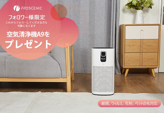 ノンフライヤー、空気清浄機、ロボットやコードレス掃除機などの研究開発、生産、販売を一体化した家庭用家電の総合メーカーであるプロセニック株式会社は、10月13日(木)19:00から10月19日(水)23:59まで約6日間にわたって、Instagramにおいて、人気商品A9空気清浄機が無料で抽選に参加できる特別企画を実施致します。