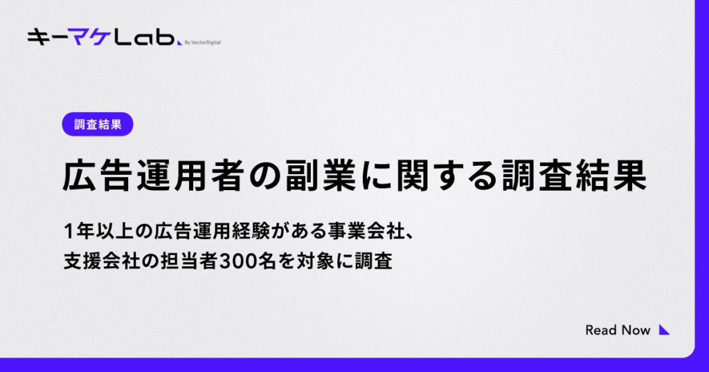 株式会社キーワードマーケティング(本社:東京都港区、代表取締役:滝井 秀典、以下「キーワードマーケティング」)が展開するメディア「キーマケLab(読み:キーマケラボ)」は、1年以上の実務経験がある事業会社・支援会社の広告運用担当者300名を対象に、広告運用者の副業に関する調査を実施いたしました。