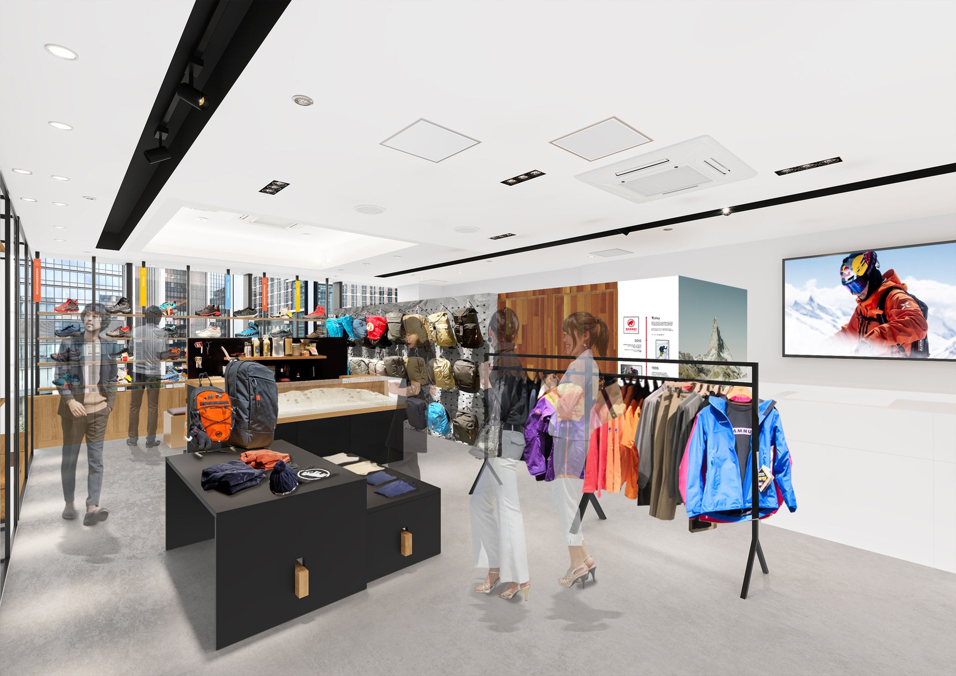 マムートは、10月17日(木)「KITTE丸の内」4階に、東京都内3店舗目となる直営店「マムートKITTE丸の内」をオープンいたします。「マムートKITTE丸の内」のコンセプトは、「ビジネスにもアウトドアのマインドを!」。アウトドアで溌剌と動くような、アクティブなマインドでビジネスをドライブすること。週末のアウトドアプランを考えて、心に余裕のあるビジネスライフを過ごすことをサポートするような店作りを目指します。店内には後述する“ヒュッテ1862”のスペースがあり、東日本のハイキングロケーションについて店舗スタッフと話し合ったり、週末のアウトドアのプランや装備を相談できるストアです。またスイスならではアウトドアの楽しみ方をお知らせすることも考えております。