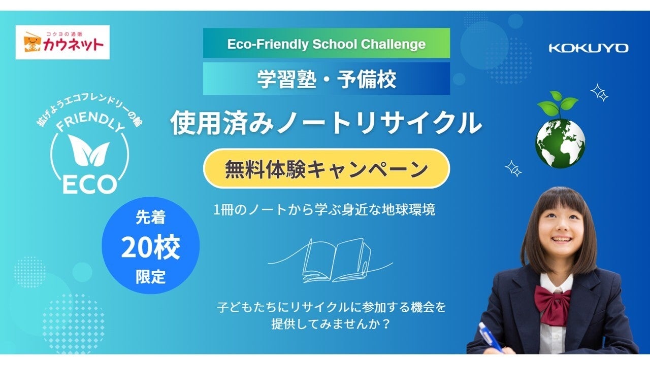 コクヨグループで Eコマースサービスを提供する株式会社カウネット(本社:東京都港区/代表取締役社長:宮澤典友 以下「カウネット」)は、全国(沖縄本島以外の離島を除く)の学習塾・予備校を対象に、使用済みノートリサイクルの無料体験キャンペーンを2025年9月17日(水)から開始します。