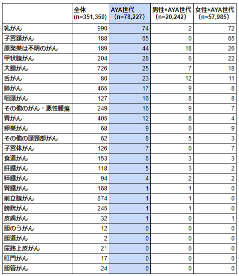 (*AYA世代とは、Adolescent&Young Adult(思春期・若年成人)のことをいい、15歳から39歳の方々を指します。)