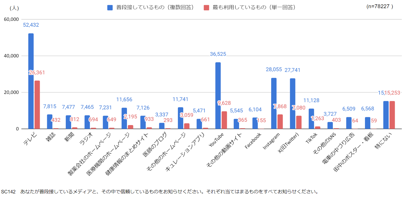 ・普段接している・利用しているメディアとしてはテレビが最も高く、次いでYouTube、Instagram、X(旧Twitter)が続く〈図2〉