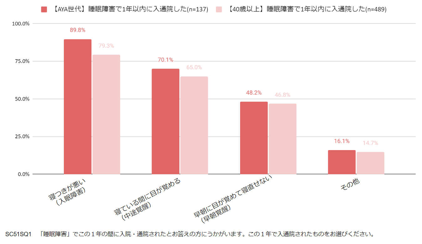 ・睡眠障害で入通院したAYA世代のうちの約9割が、寝つきが悪い(入眠障害)であった〈図5〉