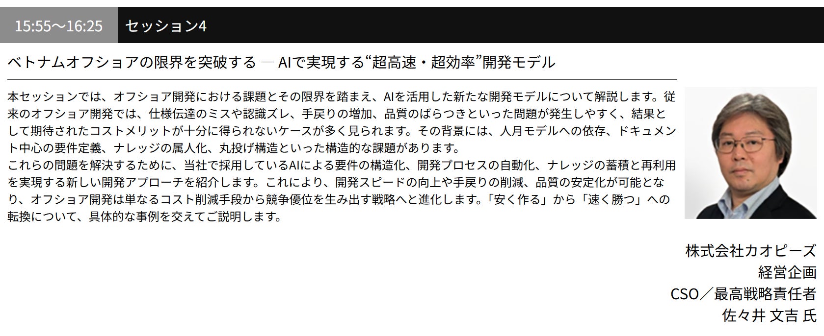 テーマ:「ベトナムオフショアの限界を突破する ― AI活用による“超高速・超効率”開発モデル」