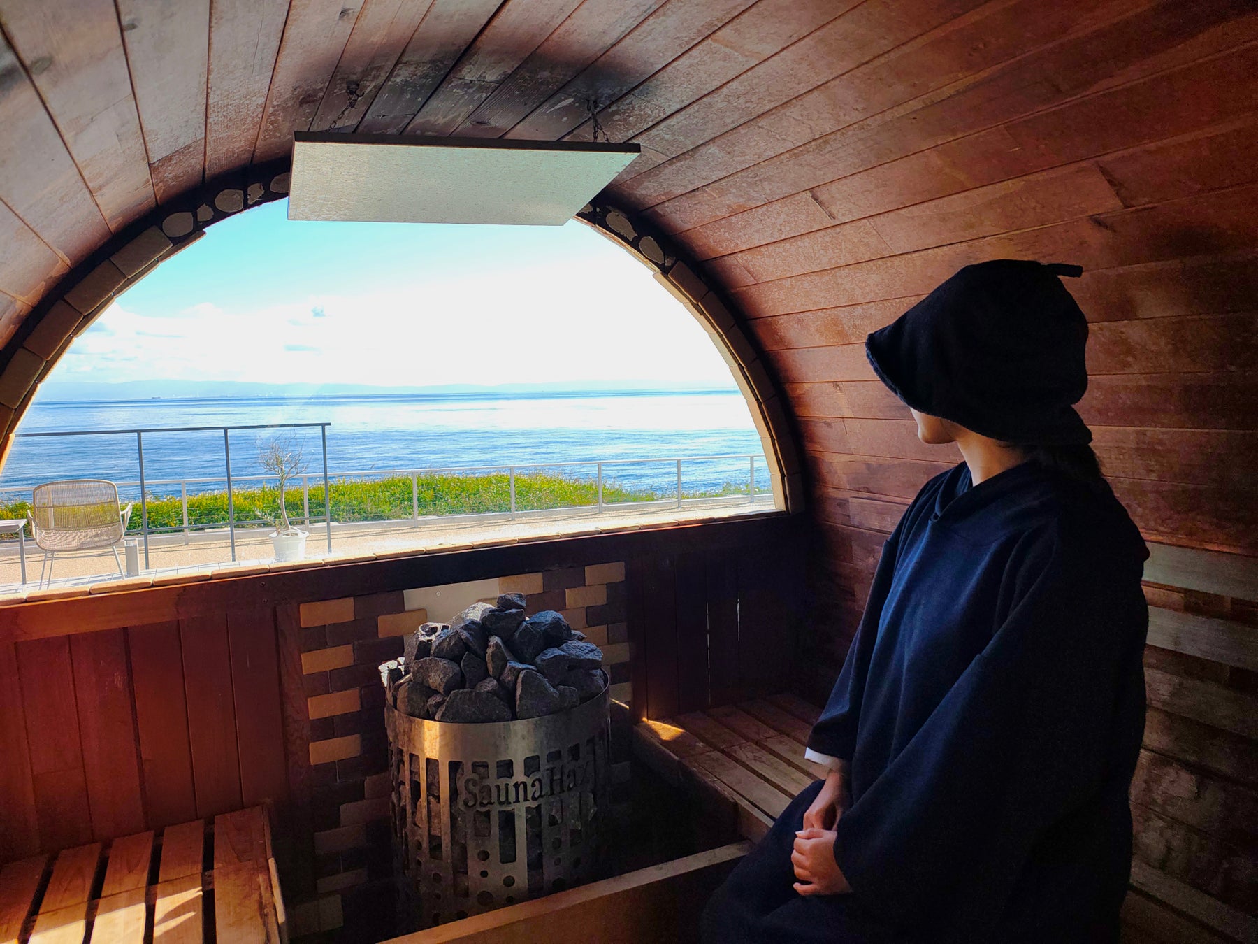 アウトドアサウナの魅力は、何といっても自然との一体感と開放感。大阪湾の大海原と広がる空に包まれながら、薪の香りとともに“ととのう”体験は、屋内では得られない特別な時間です。
