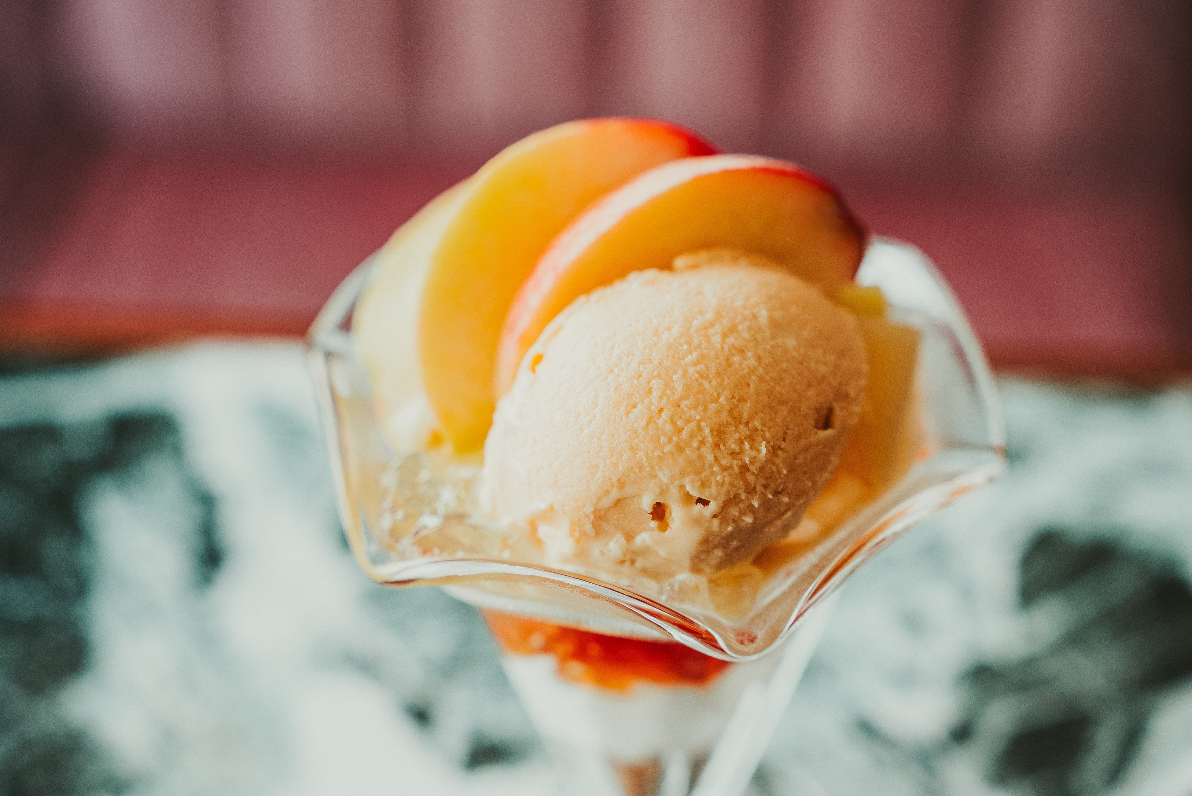 今年は、アイスを華やかな香りのするエルダーフラワーアイスを使用し、爽やかな桃との相性がさらにアップしたスペシャルなパフェに仕上げました。