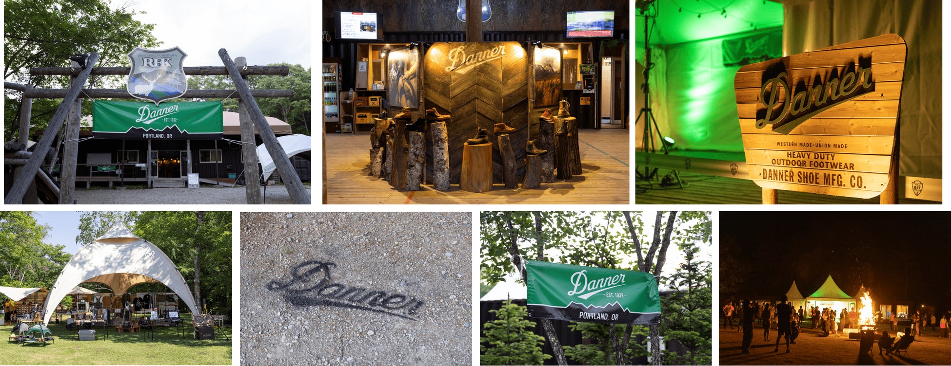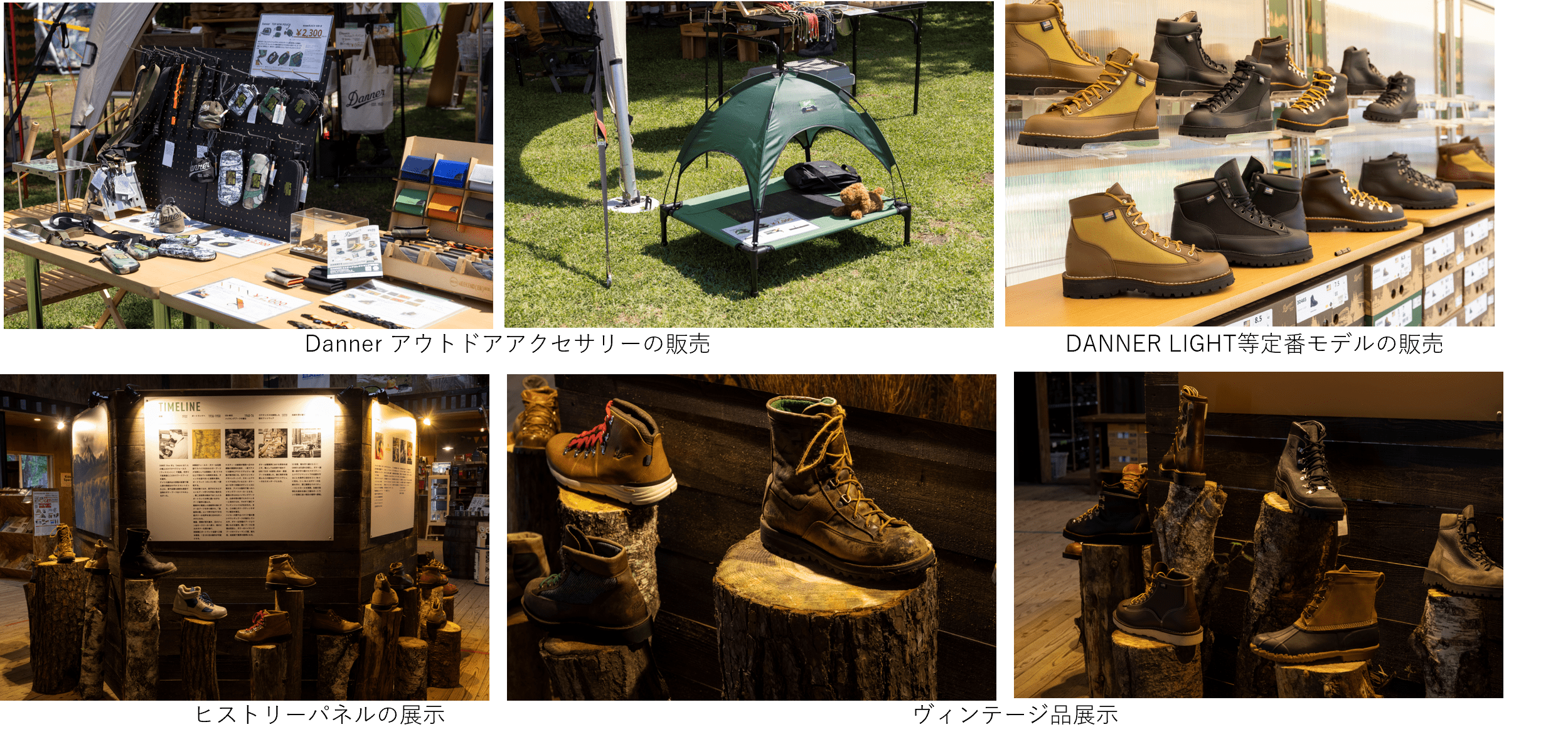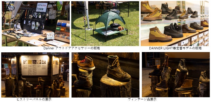 会場では、Dannerの往年の名モデルの販売やDannerのヒストリーを紐解く展示ブースの開催の他、エクスクルーシブなアウトドア体験が出来る楽しい空間を提供するために出展ブランドのワークショップや、YeYe、bird、TENDREを招いた音楽ライヴ、来場客全員参加のBBQ やキャンプファイヤーなどのコンテンツを実施しました。